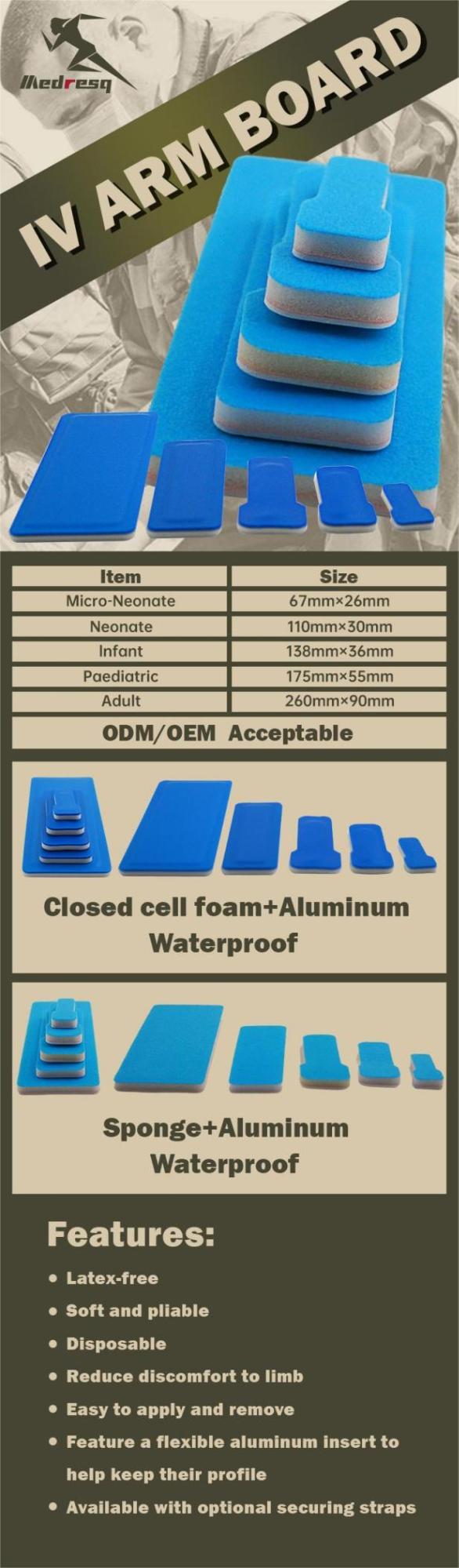 The Iv arm board AZ-AB-01/AZ-AB-02 intravenous infusion arm board is constructed from a composite of foam and aluminum materials, combining the soft comfort of foam with the supporting stability of an aluminum frame. The aluminum skeleton provides reliable rigid support to keep the arm in a straight position, facilitating intravenous puncture and infusion operations; the high-density foam padding conforms to the skin, reducing the pressure caused by long-term fixation and enhancing patient comfort.